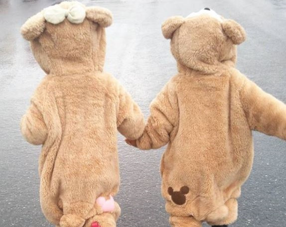 ダッフィーの着ぐるみを着せてディズニーランド ママなら一度はやってみたいと思いますよね 念願叶えたママたちの可愛い記念写真画像を集めました 見たら必ずやりたくなるので閲覧注意 2ページ目 着ぐるみ 可愛い 記念写真